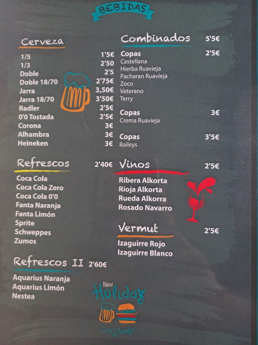 At New Holiday, you'll discover a menu brimming with a variety of Spanish delights and international favorites. Patrons rave about the spectacular hamburgers, made from high-quality meats that are grilled to perfection. Whether you're craving a mouthwatering beef burger or something a bit more adventurous like their potro (foal) burger, you won't be disappointed. The café also excels in classics like tapas and raciones, offering a perfect opportunity to sample multiple flavors. Reviews highlight their exceptional cachopos and the exquisite, generous portions that leave you satisfied yet wanting more.